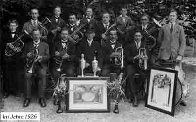 1926 war die Kapelle dann soweit gediehen, um in Stetten a.k.M. ein Wertungsspiel in der Unterstufe zu absolvieren. Stolz kehrten die Musikanten mit einem errungenen 1a-Preis heim. Dieser Erfolg warb neue Freunde und Gönner der Blasmusik. Die zwischenzeitlich gestiegene Verantwortung für die Kapelle, insbesondere aber für ihre finanziellen Belange, die ja voll auf den Schultern der Musiker lastete, führte zum Entschluss, passive Mitglieder zu werben.