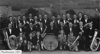 1951 galt es, das 40jährige Jubiläum, verbunden mit einem Musikertreffen, an dem sich 16 Kapellen beteiligten, zu feiern. Die Kapelle bestand damals aus 28 Musikern.