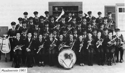 1961 zeichnete sich ein Höhepunkt in der Vereinsgeschichte ab mit den Festtagen vom 10. bis 12. Juni anlässlich des »Goldenen Jubiläums«, das in Verbindung mit dem 12. Kreismusikfest, dessen Ausrichtung dem Musikverein übertragen worden war, gefeiert wurde. 28 Kapellen, darunter eine Kapelle aus Österreich beehrten den Musikverein mit ihrem Besuch. Die vortreffliche Organisation sowohl des Wertungsspiels wie auch der gesamten Festtage, und die Gunst des Wettergottes, ließen das Jubiläum zu einem glanzvollen musikalischen wie auch gesellschaftlichen Höhepunkt in der Gemeinde werden.